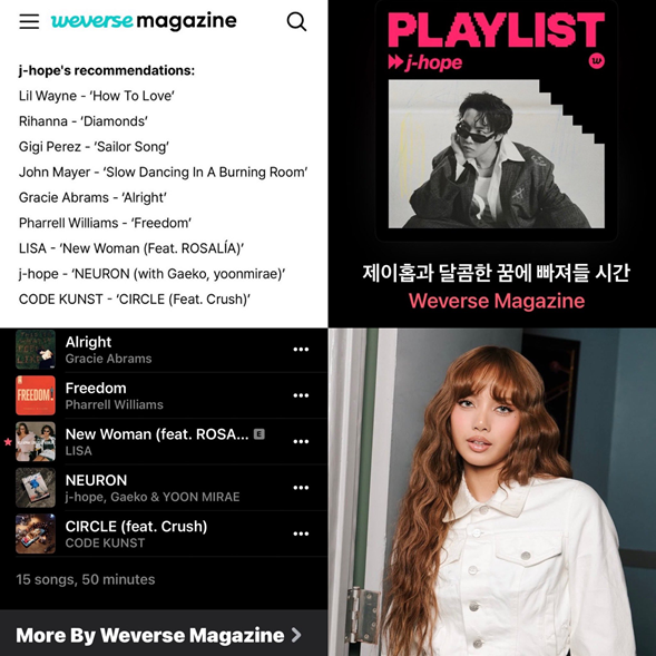 J-Hope has recommended New Woman by Lisa and Rosalia. pic.twitter.com/uDrAqzi60H
