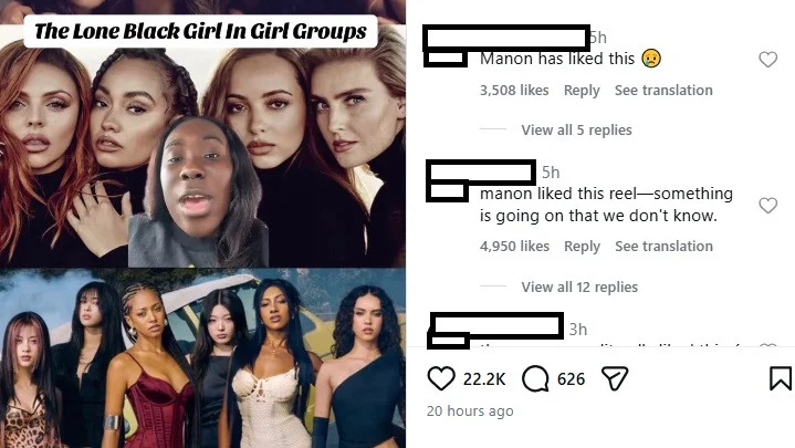โพสต์ดังกล่าวเป็นคลิปที่กล่าวถึงเกิร์ลกรุ๊ประดับนานาชาติอย่าง KATSEYE, Little Mix และ Fifth Harmony พร้อมแคปชันว่า “เด็กผู้หญิงผิวสีอีกคนที่ต้องเผชิญกับการเหยียดผิวและการปฏิบัติที่ไม่เป็นธรรมจากค่ายอีกครั้ง” โดยเนื้อหาในคลิปชี้ให้เห็นว่า สมาชิกผิวสีในเกิร์ลกรุ๊ปมักเผชิญปัญหาในลักษณะดังกล่าว และมีการอ้างถึงกรณีการพักกิจกรรมแบบไม่มีกำหนดของ Manon ด้วย