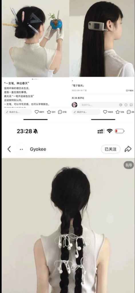 ในอีกด้านหนึ่ง บางส่วนมองว่าการนำวัตถุมาตกแต่งผมยาวเป็นเทรนด์ที่พบเห็นได้ทั่วไปบนแพลตฟอร์มอย่าง Pinterest, Instagram หรือแม้แต่นิตยสารแฟชั่น จึงอาจเป็นเพียงแนวคิดที่อยู่ในกระแสอยู่แล้ว