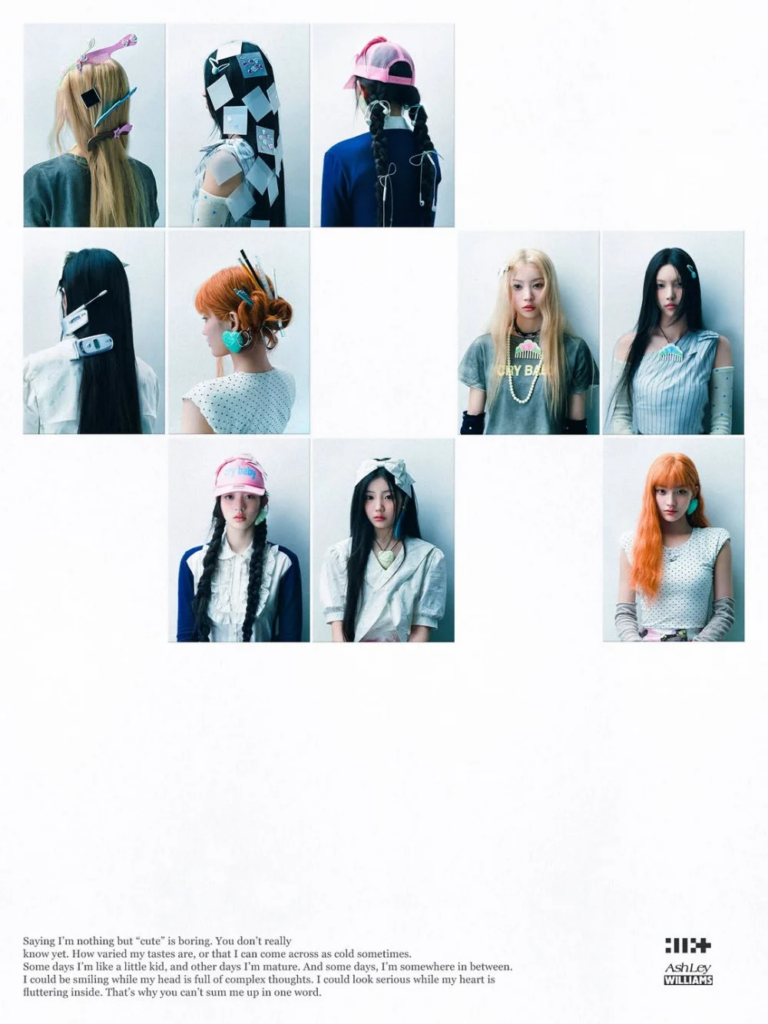 ชาวเน็ตบนชุมชนออนไลน์ได้แชร์ภาพจากซิงเกิลอัลบั้มแรก ‘NOT CUTE ANYMORE’ ของ ILLIT ซึ่งเป็นคอนเซ็ปต์ที่ถ่ายด้านหลังศีรษะของสมาชิก โดยนำวัตถุต่างๆ เช่น เครื่องสำอาง แปรง โทรศัพท์มือถือ และอุปกรณ์อื่นๆ มาตกแต่งเส้นผมในลักษณะเหมือนเครื่องประดับ