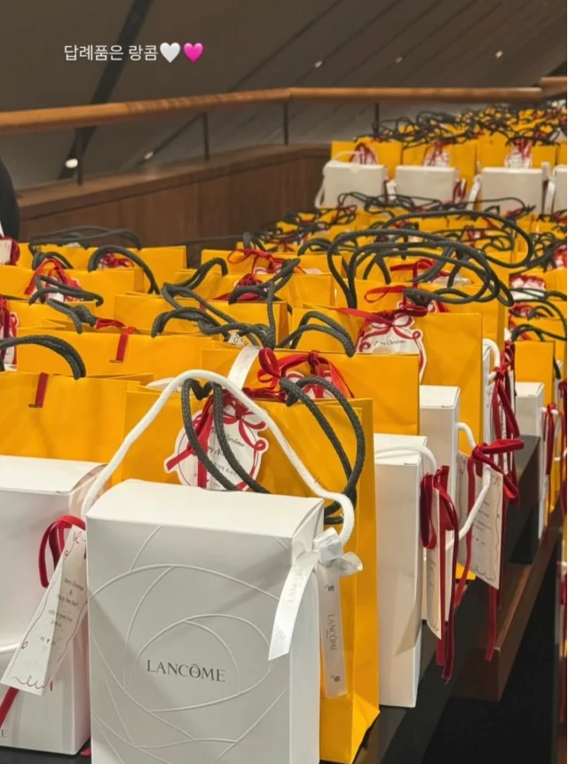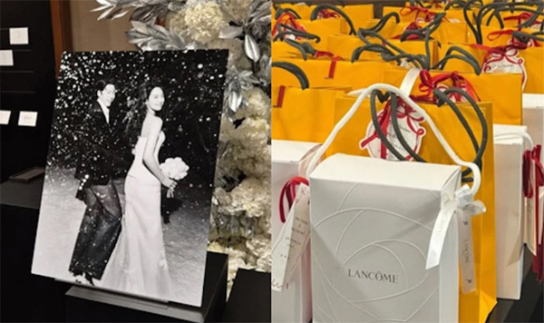การ์ดเมนูมาพร้อม ภาพวาดด้วยมือและข้อความเขียนด้วยลายมือของทั้งคู่ เพิ่มความอบอุ่นและจริงใจให้กับงาน ส่วนของขวัญขอบคุณ แขกได้รับผลิตภัณฑ์จาก Lancôme แบรนด์ที่ Shin Min Ah เป็นแบรนด์แอมบาสเดอร์ รวมถึงสินค้า จาก Acqua di Parma โดยทุกชุดมาพร้อมการ์ดข้อความว่า